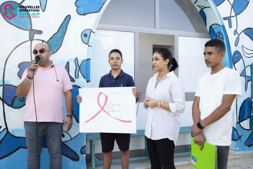 Le mois d’octobre est marqué par la mobilisation contre le cancer du sein, les élèves du PEI 3 ont eu l’initiative d’inviter le cancérologue Dr Tarek BOUZID qui nous a parlé du cancer et la sensibilisation au dépistage